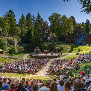 Das Ensemble des Eduard-von-Winterstein-Theaters aus Annaberg-Buchholz spielt bereits seit 1928 im beeindruckenden Naturtheater Greifensteine. Seit den 1950er Jahren ist diese einzigartige Bühne mit ihren imposanten Granitfelsen fester Bestandteil des sommerlichen Repertoires und schenkt seither unvergessliche Theatererlebnisse unter freiem Himmel.